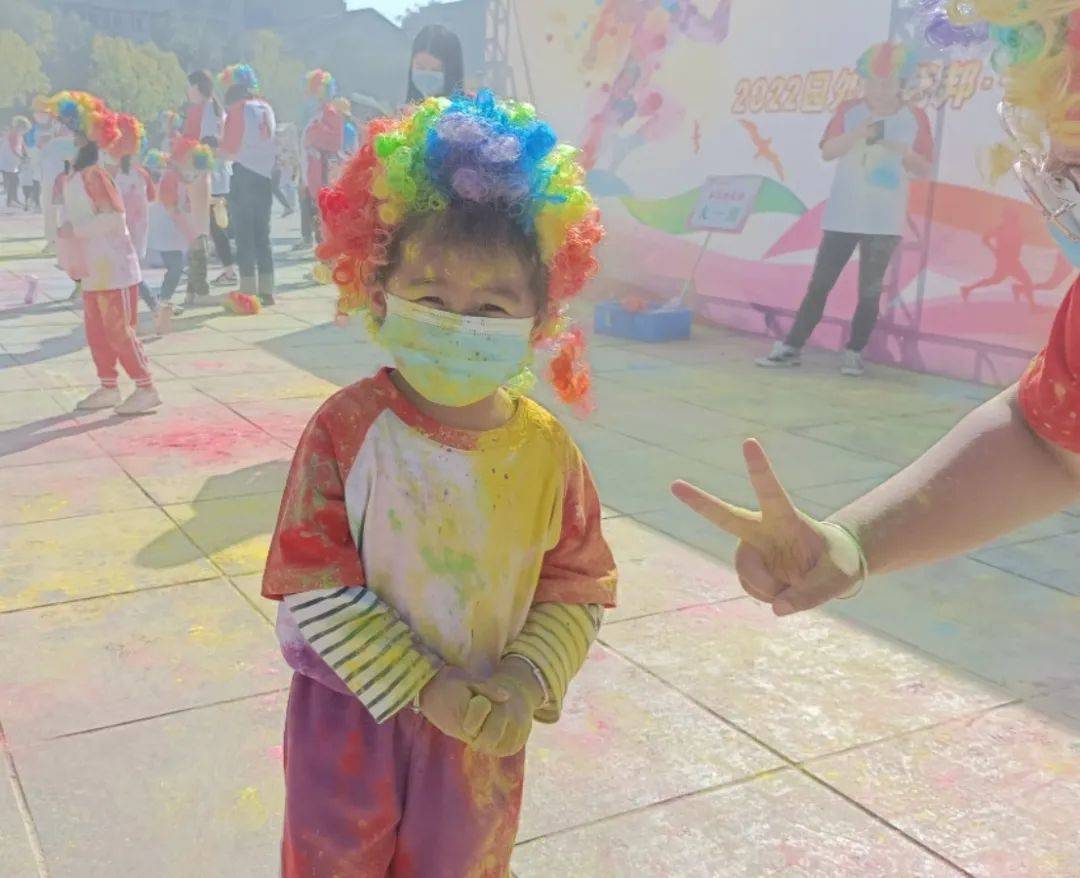 家長(zhǎng)和孩子們活力開(kāi)跑,沿著指定的跑道一路向前、一路歡笑,熱情的老師們則在途中拋灑彩色玉米淀以示祝福,不同的站點(diǎn)、播撒不同顏色,讓路途變得繽紛多彩,讓幸福得以盡情綻放。