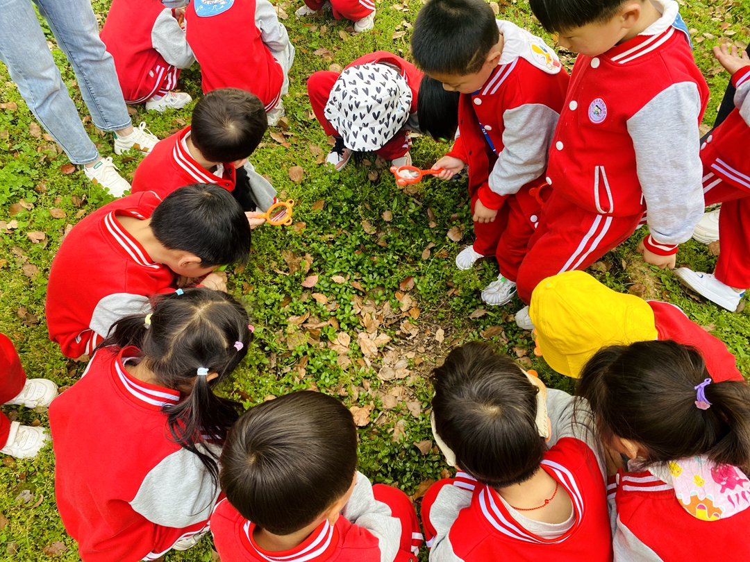 園外園迎賓園的小朋友們跟隨老師走進了八大山人。這里有著郁郁蔥蔥的樹葉,有紅的、黃的、綠的......五彩繽紛,美麗極了~一陣微風吹過,樹葉隨風奔向大地,寶貝們迫不及待地低頭尋找那一片屬于自己最獨特的葉子。