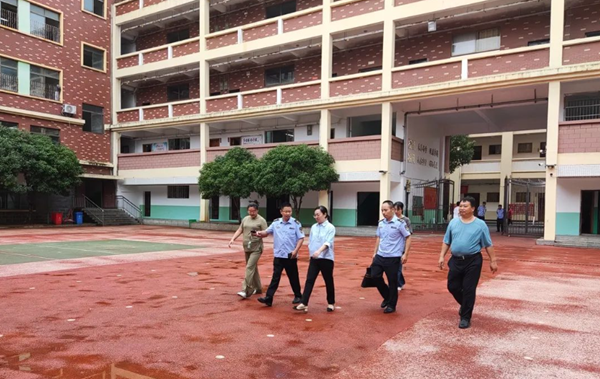 2023年9月14日上午,南昌縣縣委常委統戰部皮部長、八月湖街道辦市場監管局李局長等領導一行冒著蒙蒙細雨深入我校進行安全檢查,全面檢查了學校食堂開學后的師生伙食服務情況及食品衛生安全工作。