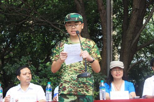 學生代表也作表態發言,表示一切行動聽指揮,服從老師和教官的管理;嚴格要求,嚴格訓練,努力完成規定的軍訓任務;向教官學習,學習他們的好思想、好作風、好品德,并在今后的學習生活中弘揚光大;搞好宿舍的內務衛生。