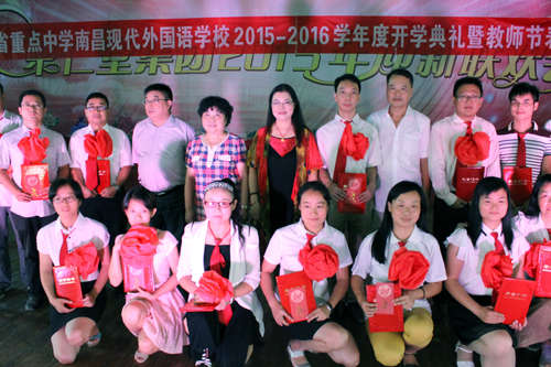 9月10日上午,南昌現(xiàn)代外國語學校(迎賓校區(qū))2015年開學典禮暨教師節(jié)表彰大會在學校五樓會議廳隆重舉行。校長劉雁華,初中部校長鄧華,小學部校長傅紹玫等校領導及各班班主任和3000多名學生參加典禮。