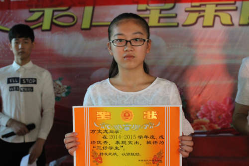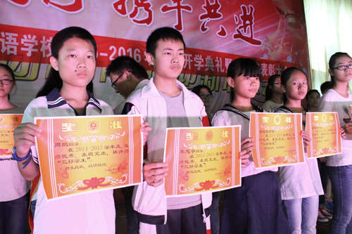 鄧校長宣布了優(yōu)秀教師、先進工作者,文明之星,進步之星,優(yōu)秀班干,三好學生名單,劉雁華等校領導為獲獎班級和個人頒獎并合影留念。