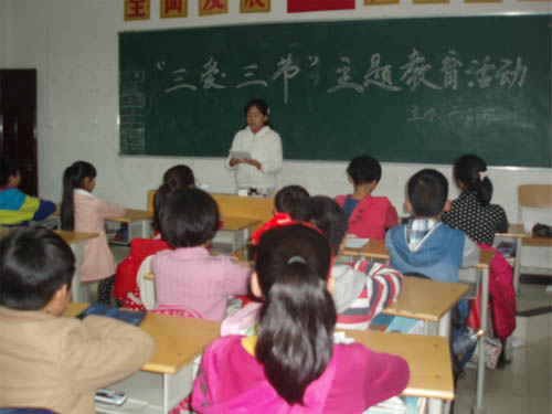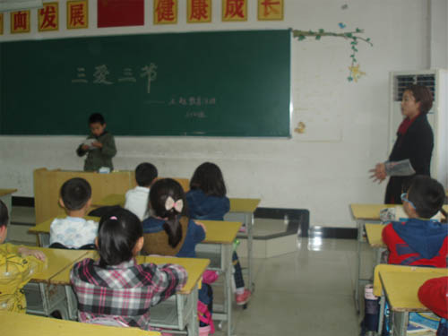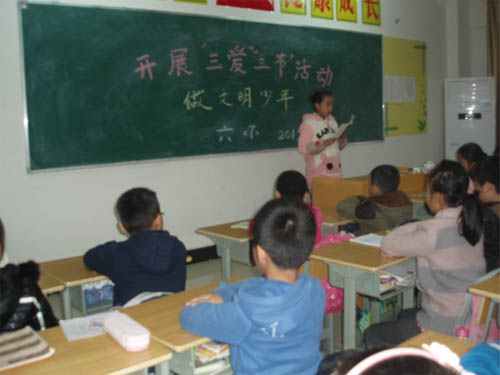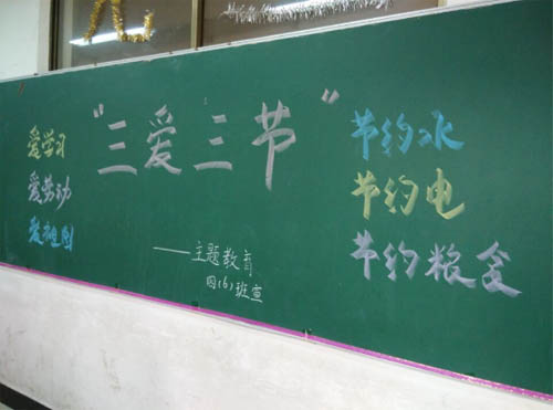 各班以班級為單位都開展了“三愛 三節”主題班會活動。活動形式多樣,有的以知識競答方式普及生活中的三愛三節知識,有的用多媒體播放愛學習、愛勞動、愛祖國的典型事例;有的以演講形式聯系身邊節水、節電、節糧的故事進行講解,闡述自己的收獲;有的制作手抄報反映自己對“三愛三節”的理解。