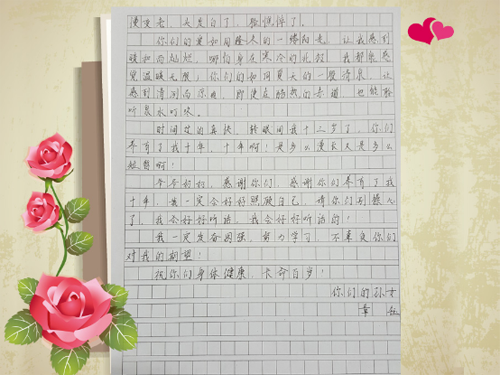 在感恩父母的環(huán)節(jié)中,主持人展示一系列關(guān)于自己父母的問題向同學(xué)們提問,考查同學(xué)們對自己父母的了解程度。緊接著播放視頻《人的一生,感恩教育》 ,短片中浮現(xiàn)出我們從小到長大成人及父母從年輕到年邁各階段的特征,旨在培養(yǎng)學(xué)生的感恩之心。視頻過后,展示的是一名叫章鈺同學(xué)寫給爺爺奶奶的一封信。章鈺三歲時,父母就分開了,爺爺奶奶撫養(yǎng)了章鈺整整十年。在這十年間,爺爺奶奶承擔(dān)了太多本該章鈺父母承擔(dān)的責(zé)任。寒冬里,他們起早床,為孫女準備早餐,洗衣服。晚上,悉心為孫女蓋被子。十年間,章鈺在慢慢長大,爺爺奶奶卻在慢慢變老。借此機會,章鈺同學(xué)利用攢下的零花錢,為爺爺奶奶獻上了一份真摯的禮物,感謝他們的養(yǎng)育之恩。此時,《時間都去哪了》從耳邊傳來,三人相擁而泣。情到深處,感人肺腑,全場為之動容,在座的校長、老師、家長、同學(xué)們都流下感動的淚水。借著章鈺同學(xué)對爺爺奶奶的深情傾訴,主題班會來到了此環(huán)節(jié)的最后一部分,部分同學(xué)給父母獻禮,同學(xué)們紛紛感激父母的養(yǎng)育之恩,對自己的不懂事表示深深的愧疚。