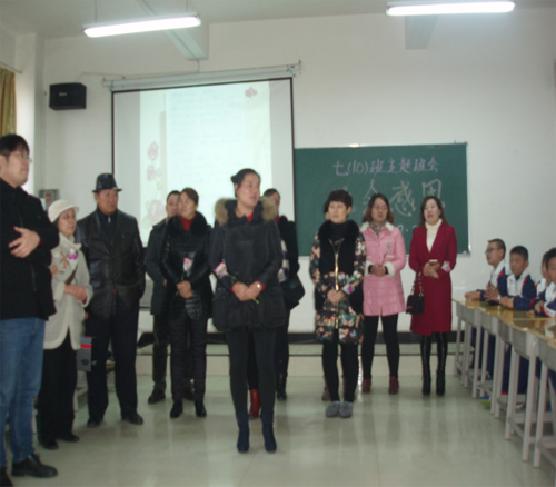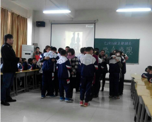 本次班會在七(十)班全體同學(xué)演唱班歌《飛翔吧!10班》 的歌聲中拉開序幕。班會分為三個環(huán)節(jié):感恩父母、感謝恩師、感恩青春季。
