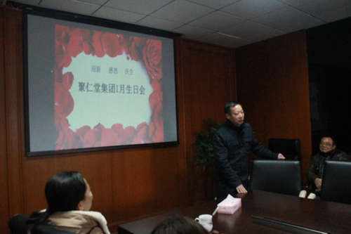為加強集團文化建設和人文關懷,營造團結友愛、和諧溫馨的聚仁堂大家庭氛圍,1月30日上午9點40分,聚仁堂集團首屆員工生日會在聚仁堂集團總部會議室舉行。集團副總裁陸洋、董事長助理熊紹文、行政人力資源部總監詹攀攀、工程總監鄒國保、物業管理部總監華志雄、品牌文化部副總監趙樺等領導出席本次生日會。