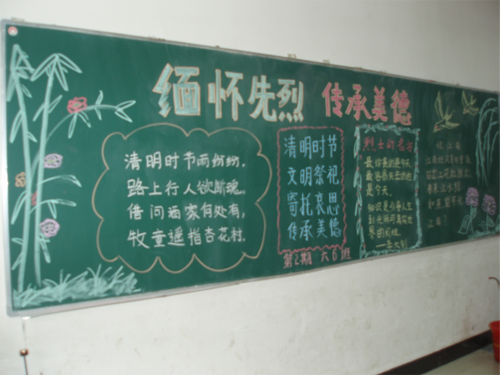 活動(dòng)在年級(jí)組長(zhǎng)的組織下,各班積極參與,參評(píng)的黑板報(bào)圍繞著清明節(jié)的起源、風(fēng)俗習(xí)慣、傳統(tǒng)習(xí)俗、緬懷先烈、紅色故事等內(nèi)容展開,圖文并茂,主題鮮明,內(nèi)容充實(shí),書寫規(guī)范,充分展現(xiàn)了學(xué)校師生積極向上的精神追求,營(yíng)造了濃郁的文化氛圍。