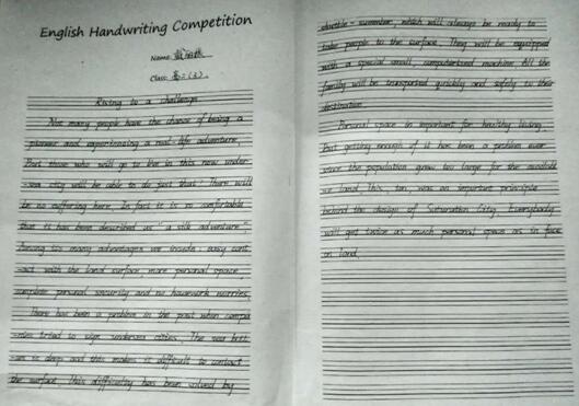本次書寫比賽得到了老師和學生們的高度重視和積極響應。許多學生提前就進入比賽狀態,高標準嚴格要求自己。比賽過程中,學生們一絲不茍、認真書寫,充分展現了自己的書寫天賦。他們的作品書寫漂亮美觀,內容充實完整,彰顯出英語書法藝術之美。這給其他學生樹立了一個學習的好榜樣!