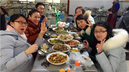 金猴報歲一年去,雄雞啼春好景來。2017年1月17日下午,南昌現代外國語學校(象湖校區)食堂歡聲笑語,喜氣洋洋。全校教職員工齊聚一堂,以聚餐的形式為自己一年的努力喝彩!這是一個幸福快樂的家庭聚會,一個230多個教職員工的大家庭,勞作了一年,聚在一起,品嘗汗水培育的果實的聚會。會上,李金玉校長作了新年賀詞,她說:“我們有緣相聚在聚仁堂集團,在大家的共同努力下,我們學校發展規模上了一個新臺階。今天讓我們共同舉杯,慶祝本學期工作圓滿結束,祝愿大家過一個萬事如意平安年,夢想成功發財年”。副校長胡卓越彈起了手風琴,一同和老師開心得歡樂起來。食堂大姐端來甘甜的美酒,讓大家開懷暢飲。一時間,會場沸騰起來了,歌聲、笑聲、喊聲,大家在把酒言歡中交流新年愿望。對酒當歌,人生幾何,老師們盡情揮灑自己身為現外人的幸福!