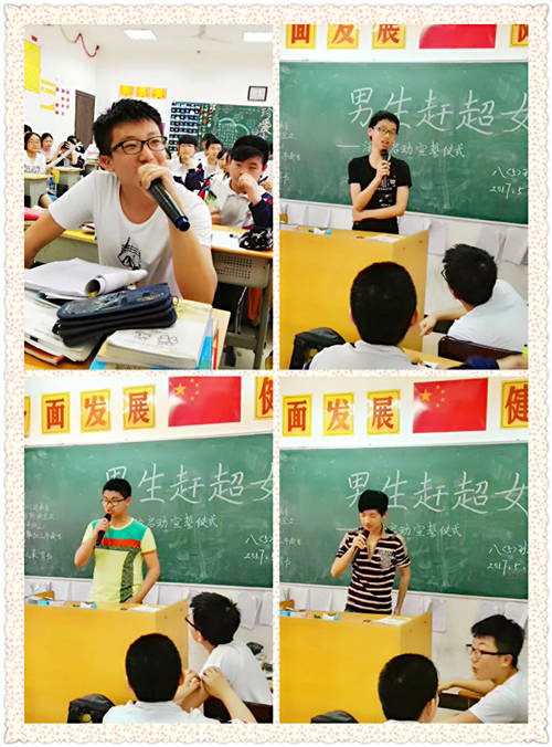 2017年5月15日 下午,陽光不燥,微風正好。南昌現代外國語學校(象湖校區) 八年級(5)班的同學們正熱火朝天地討論著什么。原來是他們班“男生趕超女生”活動啟動宣誓儀式正式開始啦。