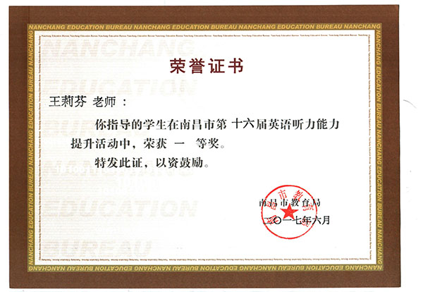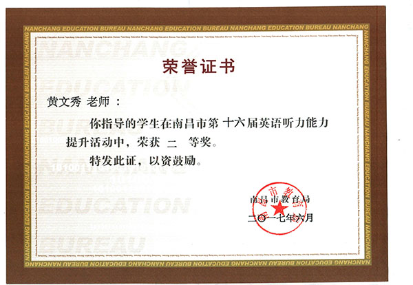 近日,在南昌市第十六屆英語聽力能力提升活動中,南昌現代外國語學校迎賓校區4名教師、高二、高三學生共計10名學生在活動中取得了優異成績。