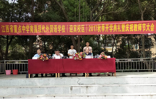 9月9日下午,南昌現代外國語學校(迎賓校區)全體師生齊聚操場,隆重舉行了2017年秋季開學典禮暨慶祝教師節大會。大會由初中部鄧華校長主持。同時邀請了學生家長參與。