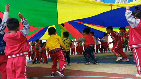 10月23日上午,又到了江西迪斯尼·象湖園孩子們最?lèi)?ài)上的體育課,這一次旺仔老師帶來(lái)了《好玩的彩虹傘》主題體能課,彩虹傘的玩法多種多樣,如鍛煉跑跳能力的“拉個(gè)圓圈走走”,增強(qiáng)手部、腿部力量的游戲。鍛煉動(dòng)作協(xié)調(diào)性和靈敏性的“海底捉小魚(yú)”,適合進(jìn)行團(tuán)體游戲的“蒙古包”,可以將彩虹傘拋上拋下鍛煉躲閃能力,還可以跳傘、轉(zhuǎn)傘、抓傘……訓(xùn)練幼兒走、跑的基本動(dòng)作,感受集體活動(dòng)的快樂(lè)的“人體山洞”。