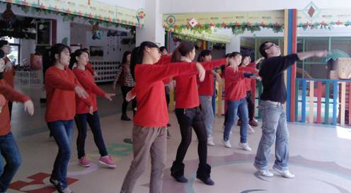 為了進(jìn)一步提高幼兒教師的舞蹈水平,增強(qiáng)教師的藝術(shù)修養(yǎng),提高幼兒園藝術(shù)教育水平,11月14日中午,江西迪斯尼幼兒園和園外園幼稚園聯(lián)合組織舉辦了幼兒教師舞蹈培訓(xùn),兩園共26名幼兒教師參加了培訓(xùn)。