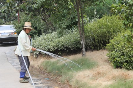 近一周的工作,綠化部每天對小區綠化植物全面澆水,澆足澆透,并及時填土封坑保濕。特別是針對旱情比較嚴重的植物進行進行澆灌和全面洗冠,保持葉面呼吸暢通,確保小區內植物的成活。聚龍物業綠化工作人員的辛勤付出,確保了綠色植物的正常生長,小區內的綠化又恢復了勃勃生機。?????????????????????????????????????????????