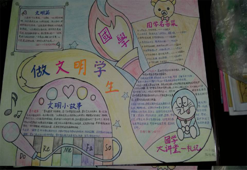 為營(yíng)造更為濃厚的學(xué)國(guó)學(xué)氛圍,南昌現(xiàn)代外國(guó)語學(xué)校(象湖校區(qū))掀起了國(guó)學(xué)經(jīng)典進(jìn)校園活動(dòng)的熱潮。11月30日舉行了一場(chǎng)“頌國(guó)學(xué)經(jīng)典,做文明學(xué)生”為主題手抄報(bào)比賽。