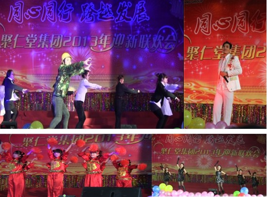 “難忘今宵,難忘今宵,無(wú)論天涯與海角,聚仁堂人同懷抱……”當(dāng)這熟悉而優(yōu)美的旋律響起,歷時(shí)3個(gè)半小時(shí)的聚仁堂集團(tuán)2013年迎新聯(lián)歡會(huì)圓滿落幕,但不落的是全體聚仁堂人澎湃的激情。本次聯(lián)歡會(huì)的所有節(jié)目均有集團(tuán)各單位的員工們自編自導(dǎo)自演,精彩的演出既展現(xiàn)了聚仁堂人多才多藝、積極向上的良好精神風(fēng)貌,也展現(xiàn)了集團(tuán)“聚仁士 獻(xiàn)仁愛(ài)”的真正魅力。