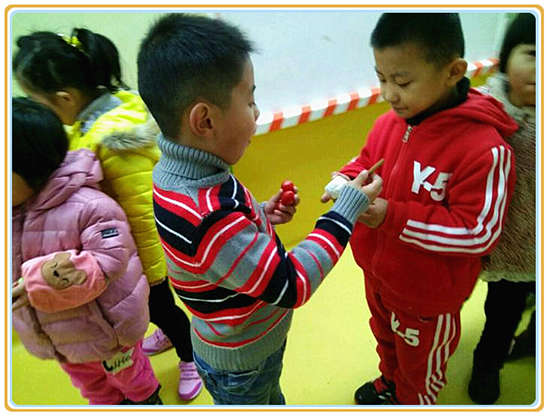 活動當天,各個幼兒身戴爸爸媽媽精心為他們制作的項鏈,在老師的帶領下走向操場。伴著愉快的音樂,與周圍伙伴互相擁抱,互相道謝-----感恩同學。