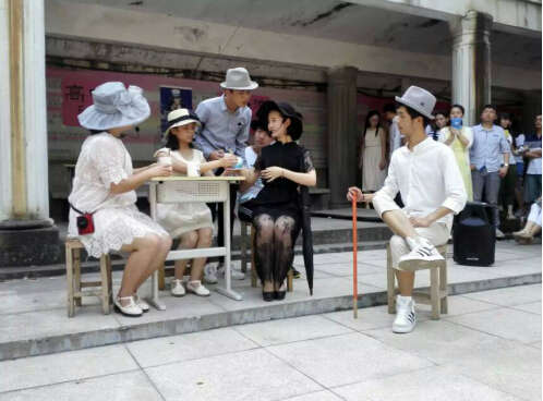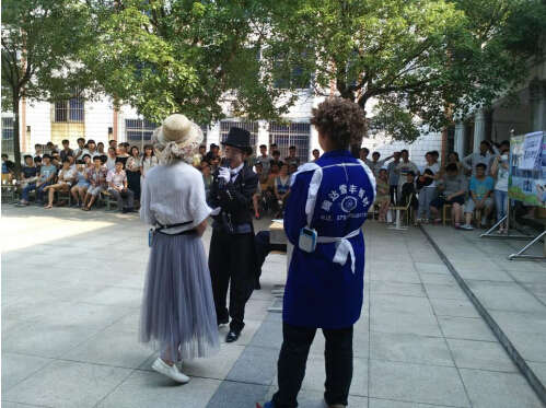 為了更好的還原話劇作品的原汁原味,學生們都愿意去開動腦筋去思考盡可能的讓自己融入戲劇的場景中。無論是從人物還是情節方面,都花了很大的功夫。從服裝的選擇,場景歌曲的設置到動作,舞蹈動作的練習以及表演神情的顯現無一不體現表演者們的努力與智慧。