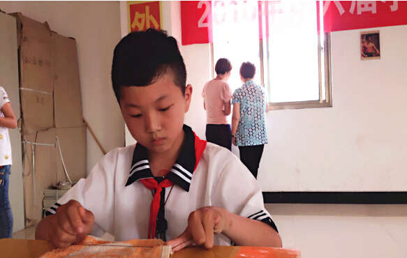 五年級是釘紐扣比賽。孩子們將自帶的針、線、布擺在課桌上。只聽一聲哨響,同學們迅速行動,你追我趕、勇爭第一,賽場氣氛異常激烈。選手們以靈巧的雙手、嫻熟的動作向師生們大顯身手,部分學生的表現更是讓師生們嘖嘖贊嘆,可見他們在賽前進行了大量刻苦練習。大部分同學都很順手,步驟清楚、動作麻利、眼神專注,看上去還有“專業”范兒。