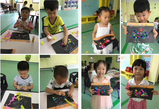寶貝們用斯帖、揉貼等方式裝飾小烏鴉,小朋友們?cè)谘b飾過程中相互幫助,不爭(zhēng)不搶,秩序井然。都很愿意在活動(dòng)中大膽展示,去實(shí)現(xiàn)小烏鴉要變美的愿望。瞧!孩子們的作品完成了,多自豪多開心呀!